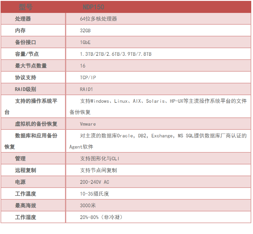 神州云科 NCS NDP100(简称NDP100)系列是集备份服务器、备份介质、备份软件于一体的产品,集成的全局客户端重复数据消除技术,使 VMware 环境、远程办公室、企业应用程序、LAN/NAS服务器以及台式机/笔记本电脑的日常完整备份变得更加方便快捷,为关键业务提供全面的数据保护。