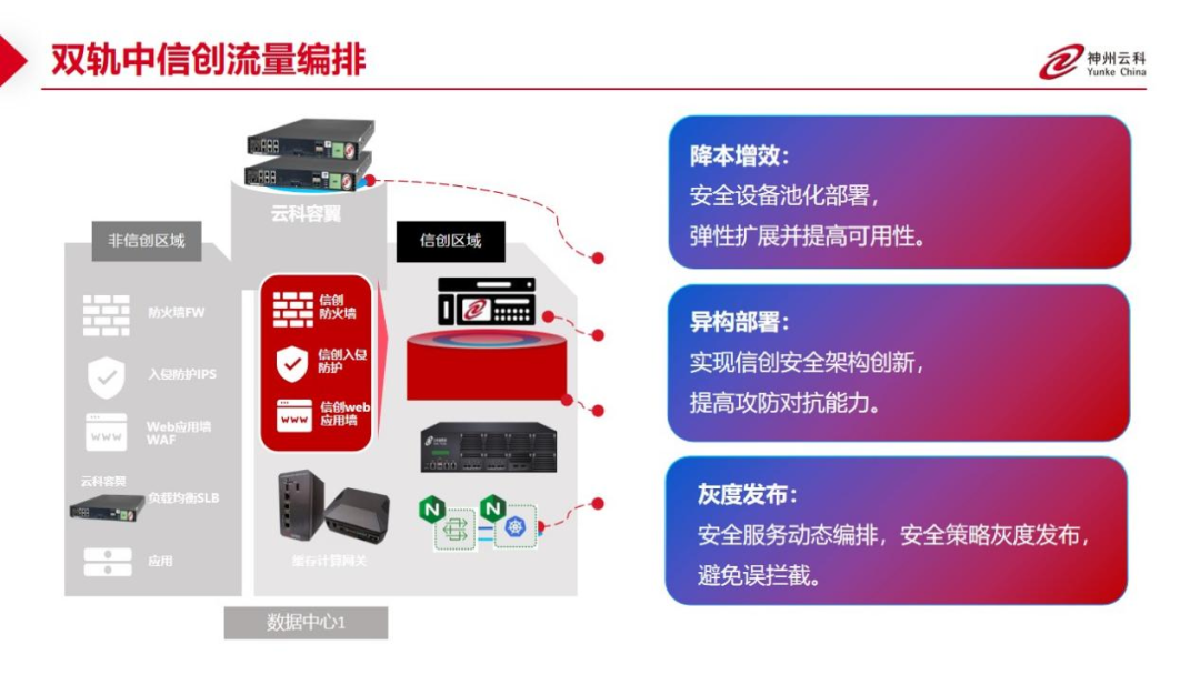 为了更好的适配双轨超高可用架构,神州云科应用交付控制器容翼系列产品和云科通明湖信创系列产品一方面可以保证信创产品的稳定性,弥合性能与企业应用要求的差距;一方面,当业务面对合规、风险和创新的挑战时,实现云原生可信开源与跨域协同。